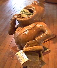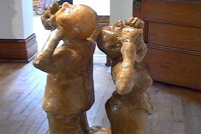 "Greed is not civil" Fibreglass, wood, clay. Updated 2008, new image not yet available (many more financial scandals of course)